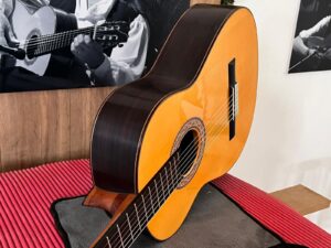 Tapa de Pino Abeto Alemán, Aros y fondo de PALO SANTO DE INDIA. Clavijero tradicional o clavijas con mecanismos Wittner Alemán. Barnizado exclusivo a Goma Nitro.